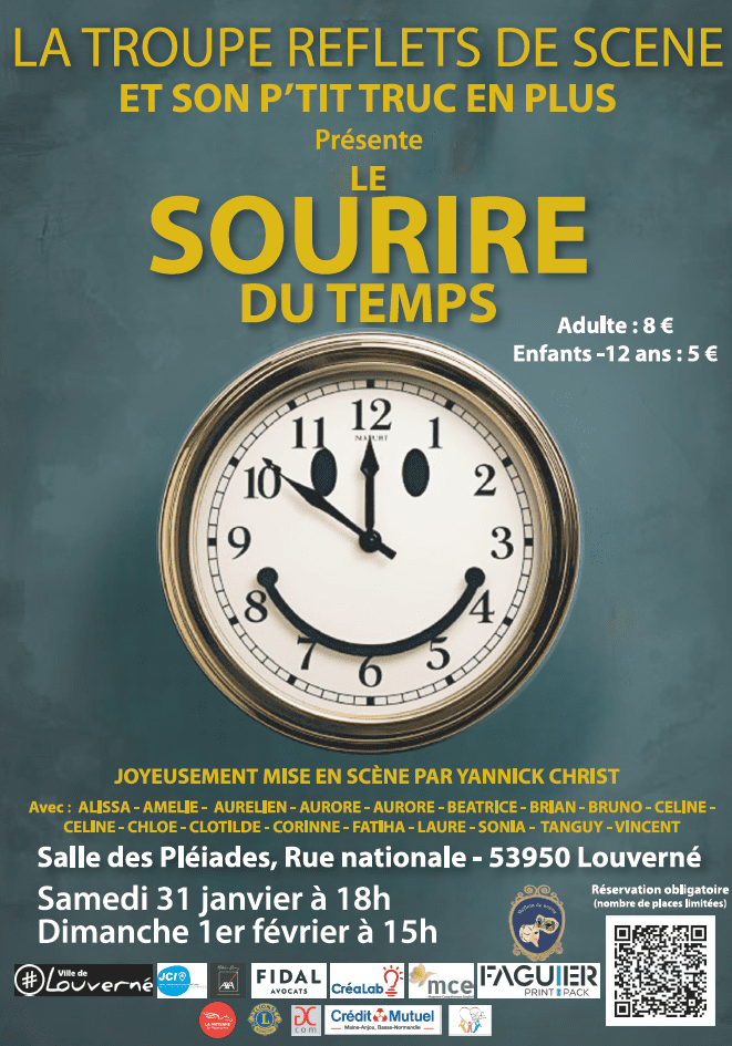 La troupe de théâtre Reflets de scène, composée à 80 % de comédiens en situation de handicap visible ou invisible, proposera deux représentations de son spectacle « Le Sourire du temps », à la salle des Pléiades de Louverné les samedi 31 janvier et dimanche 1er février 2026.